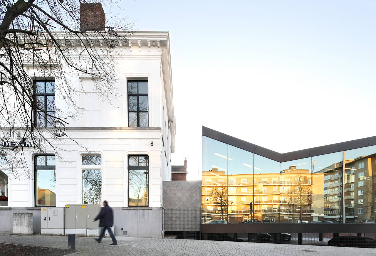 The mission to rehabilitate an existing bank facility in Harelbeke fits within revitalization of Dexia. The addition to the program with 8 office spaces, increases the necessity to build an extension.