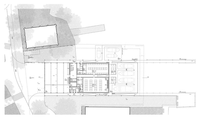 Con el proyecto ganador, “Coray” el equipo de e2a Eckert Eckert Architekten AG Zurich recibe al Mythenquai un digno sucesor. Un requisito importante del proceso de la competencia es que se mantiene el aspecto armónico de la gama Seebeck entre Mythenquai y Politécnica Rowing Club (PRC). El proyecto ganador complementa la serie de amarres para lanchas parcialmente enumerados desde la década de 1930, los diferentes clubes de remo en forma y estilo. También es posible dar cabida a todos los usos necesarios de la policía del agua en la planta baja, en el área más pequeña posible. Un garaje en el sector de tierra y un cobertizo exterior junto al lago complementan el edificio principal. El nuevo proyecto obtiene en este sitio un nuevo edificio que responde tanto a su entorno, así como las necesidades específicas que se persiguen.