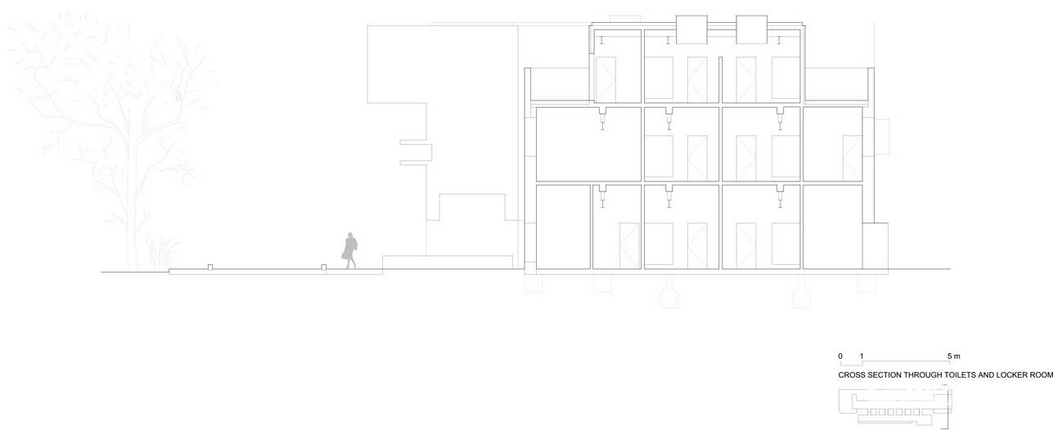 La construcción existente se disponía a lo largo, de norte a sur con dos calles rodadas en sus lados largos y una amplia zona ajardinada en todo su frente oeste. La necesidad de mantener las fachadas y la estructura del edificio original y, a la vez, duplicar su superficie para adaptarlo a las necesidades actuales llevó, por un lado, a disponer una ampliación con una planta más sobre las dos existentes y, por otro, a disponer una nueva crujía al oeste de la parcela.