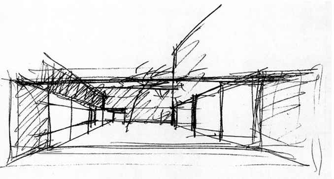 La especial importancia del espacio sagrado es palpable y evidente. A través de dos aberturas de gran tamaño, incide la luz corporal difusa en la habitación, que desemboca en el recipiente blanco, misterioso y místico, símbolo de la luz divina y el poder divino al mismo tiempo. Los visitantes entran en el espacio por encima de una apertura al patio, un vacío en el recipiente entre el interior y el exterior. Representa la transición entre el espacio profano y sagrado, representa un enfoque cauteloso al misticismo del interior.