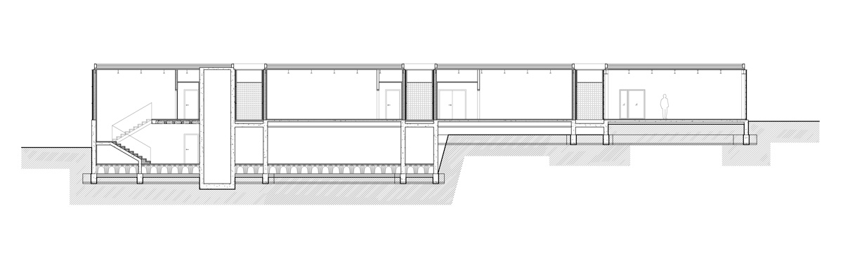 La dimensión de los módulos responde a las necesidades funcionales y normativas de los depósitos de documentos, y los espacios libres entre ellos aprovechan para crear entradas de luz en las zonas de circulación, patios de ventilación y espacios generosos de instalaciones y mantenimiento.