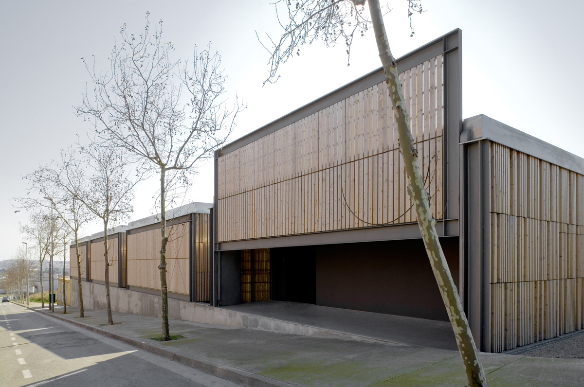 Exteriormente la estructura metálica principal enmarca los cerramientos de fachada, con acabado de listones de madera, material que envejecerá naturalmente y pretende ser una transición suave entre el entorno industrial y el parque que limitará en un futuro con la parcela.