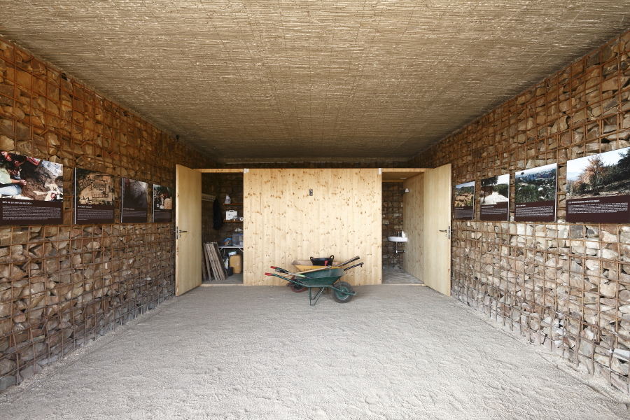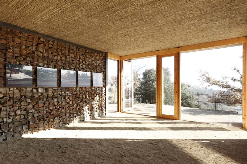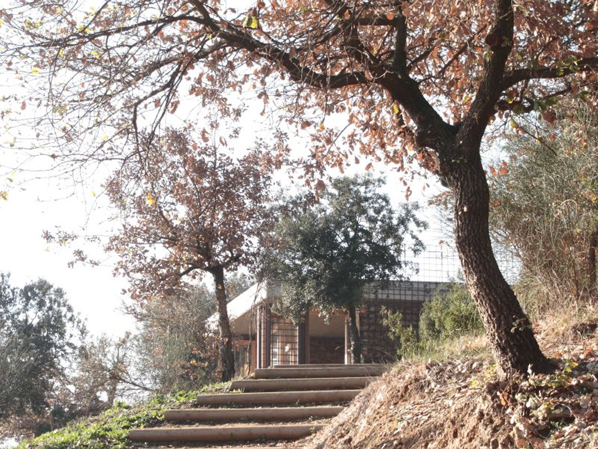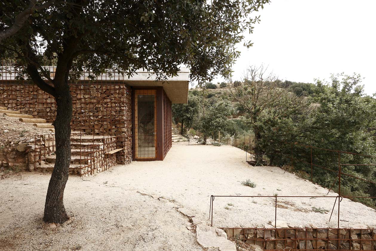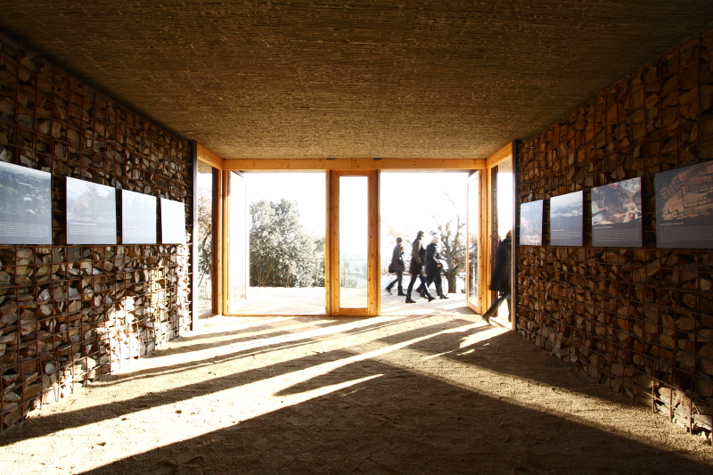 El yacimiento romano de Can Tacó se encuentra en el “Turó d’en Roina”, orientado a sur y 50 metros por encima de la confluencia de los ríos Congost y Mogent, en el nacimiento del río Besós y a unos 20 kms. de su desembocadura en el Mar Mediterráneo. Formando parte del conjunto “els Turons de les Tres Creus”, este enclave natural estructura la biodiversidad en un entorno muy fragmentado y antropizado por el hombre, y en él, se plantea recuperar tanto el patrimonio natural como el arqueológico. Transitando por un pequeño bosque y sumergidos entre la masa de robles y encinas, descubrimos el yacimiento al final de un recorrido tranquilo y sinuoso; aparecen los restos de un palacio romano con una geometría clara de los espacios que lo formaban, con zonas de gran interés que deben ponerse en valor. Edificado por sucesivos aterrazamientos y en parte con piedra licorella del lugar, lo que había sido un importante asentamiento previo a la construcción de la Vía Augusta, es en la actualidad un mirador natural hacia las comarcas del Vallès. Se interviene en el trasdós de las trazas romanas, reforzando el contenido (el espacio) y poniendo en valor el continente (los muros). Se trabaja con las tierras que con el tiempo taparon los restos y que se acumulan fuera del yacimiento producto de la excavación arqueológica. Estas tierras así como las gravas y rocas de la antigua cantera supuestamente romana, son seleccionadas y ordenadas pero con una nueva disposición, dotándolas de un nuevo significado. Un primer mallazo de acero contiene las nuevas piedras, y éstas a su vez las tierras y gravas que conjuntamente, reproducirán los sucesivos planos horizontales al nivel por donde transitaban los romanos. Un segundo mallazo más denso y delgado, se dispone como cortinaje en el tiempo, como telón de fondo donde se proyectan los diferentes restos arqueológicos. De esta manera piedra y acero, montaña e industria, conviven en estos paisajes de acumulación y, sin embargo, dinámicos por el contacto entre fragmentos; interpretando lo preexistente, poniendo en valor y activando, incorporando y no borrando, y al tiempo co-evolucionando con el medio intentando optimizar al máximo los recursos.