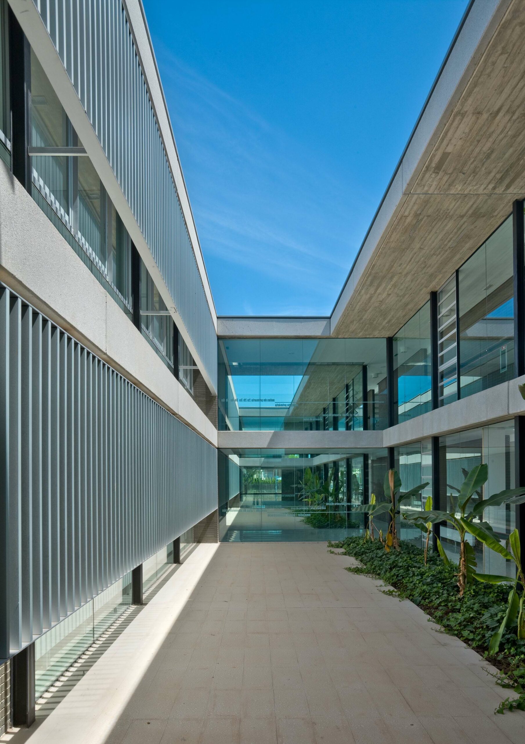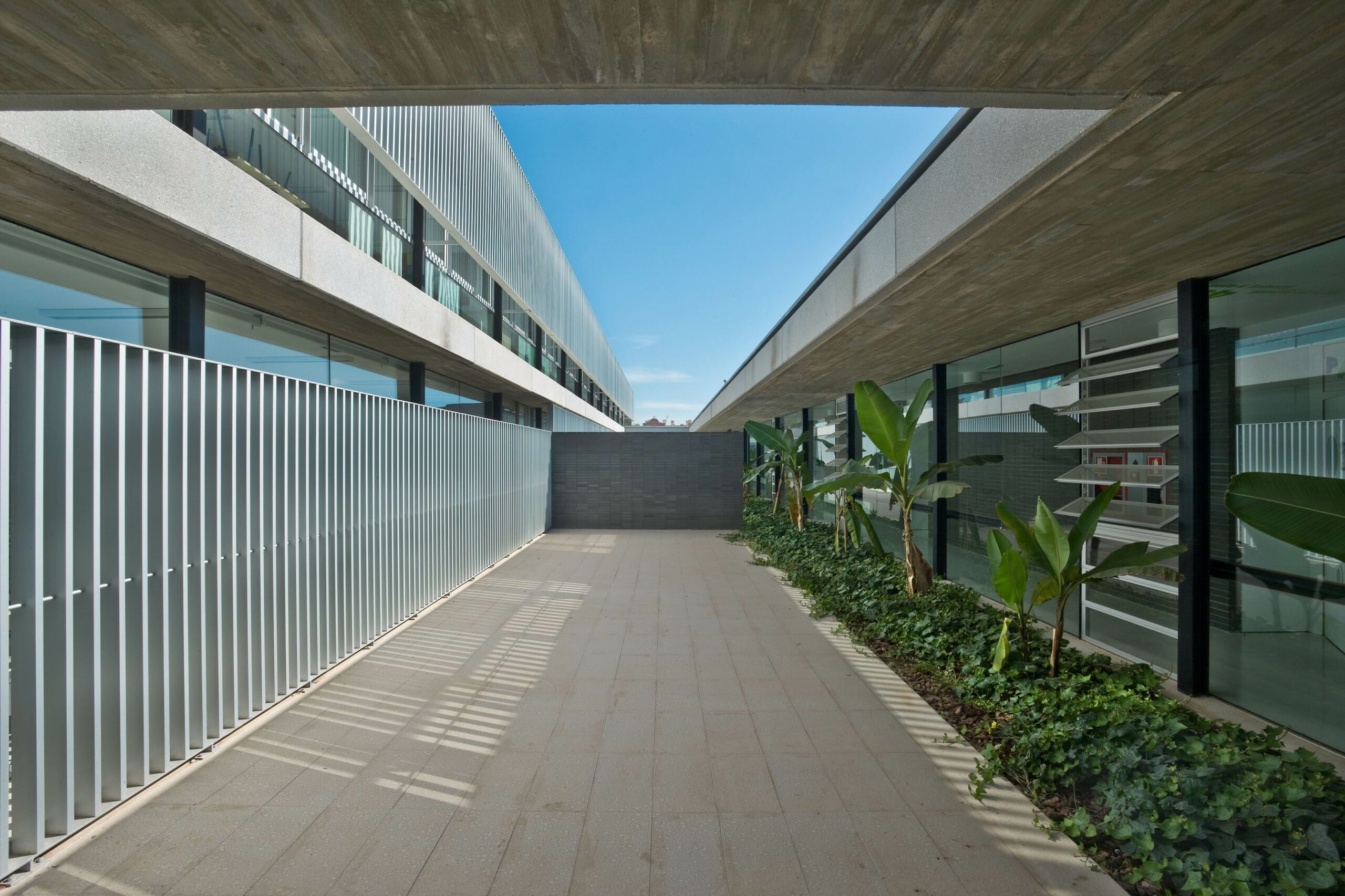 Su complejidad, con métricas y usos dispares se resuelve sin renunciar a la organización espacial global de la parcela. Se adopta una métrica de estructural con una separación entre pórticos de 4.10 metros y entre pilares de los pórticos de 2.40 y 6.50 metros. Este sistema estructural de medidas coincide con el sistema de organización de los espacios, tanto en lo que se refiere a circulaciones, espacios docentes, espacios de servicios y espacios exteriores o patios. De esta manera se establece una trama coherente pero flexible en el que se articulan áreas funcionales compactas, y diferenciadas, prestándose especial atención a las distintas relaciones entre ellas.