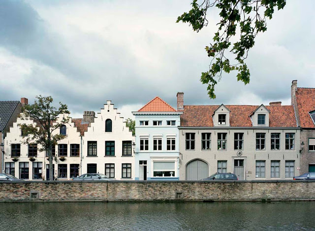 The renovation of this small terraced house, along one of the ‘Reien’ in the historical heart of Bruges, consists of reinterpreting the typical cramped back buildings as a spacious and generously lit winter garden. The doubleheight space, entirely covered in timber planks, starts off as an arch which gradually lifts asymmetrically towards the back, framing the tall tree of a neighboring garden.