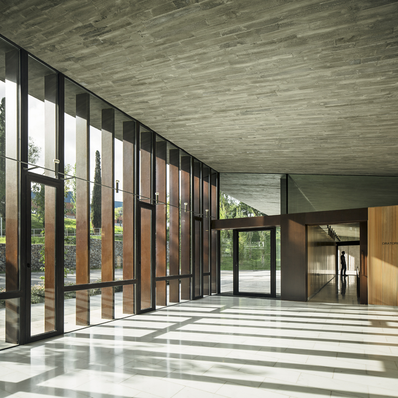 The materiality generated by the assortment of exposed structural element textures together with the natural light qualify and determinate the atmospheres of each space, accompanying the visitor’s mourning at every turn. In this way each space is illuminated by a specific light different from the rest.