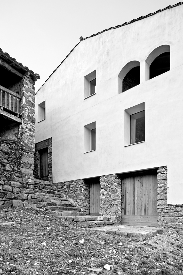 El muro de contención posterior donde la casa se ancla en la montaña era bellísimo. Además de expresar el esfuerzo de retención de la tierra, concentraba el horno y la recogida de agua se filtraba a su través.