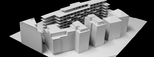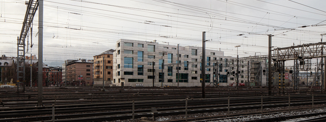 The project develops from the exciting location between two extremes: the inner city Kreis 5 (District 5) and an expansive area of railway tracks. The expansive quality of this ‘lake of a different kind’ gives the place its exceptional quality. The building responds to the external circumstances with a layered structure. The south-facing bedrooms and loggias look onto the quiet courtyard. Entrance halls, wet rooms and cloakrooms are centrally positioned. Living and dining areas profit from the breadth of the area of tracks and some are double height. Access to the building and the three staircases is from Langstrasse and from the courtyard through a naturally lit plinth level. Externally the architecture expresses the inner structure. Towards the wide area of tracks large window openings permeate the regular appearance of the façade. The calm façade towards the more intimate courtyard uses repeated openings of the same dimensions.