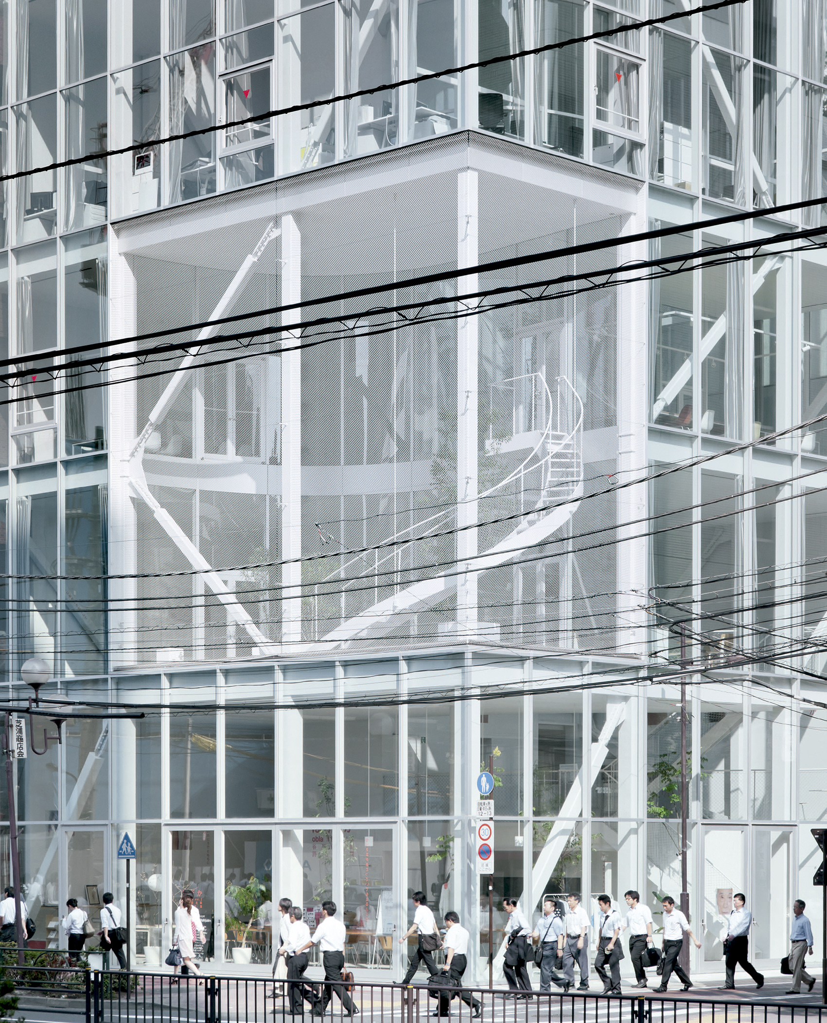 Que fuerte el urbanismo japo! En el edificio de los balconcitos redondos de al lado estaran encantados con el proyecto. Especialmente los diez pisos de ventanas a los que les ha aparecido un nuevo “vecino” de cristal a un metro y medio de sus narices… y el callejón que se genera entre los dos edificios debe de ser ideal para paseos en pareja… jejeje.