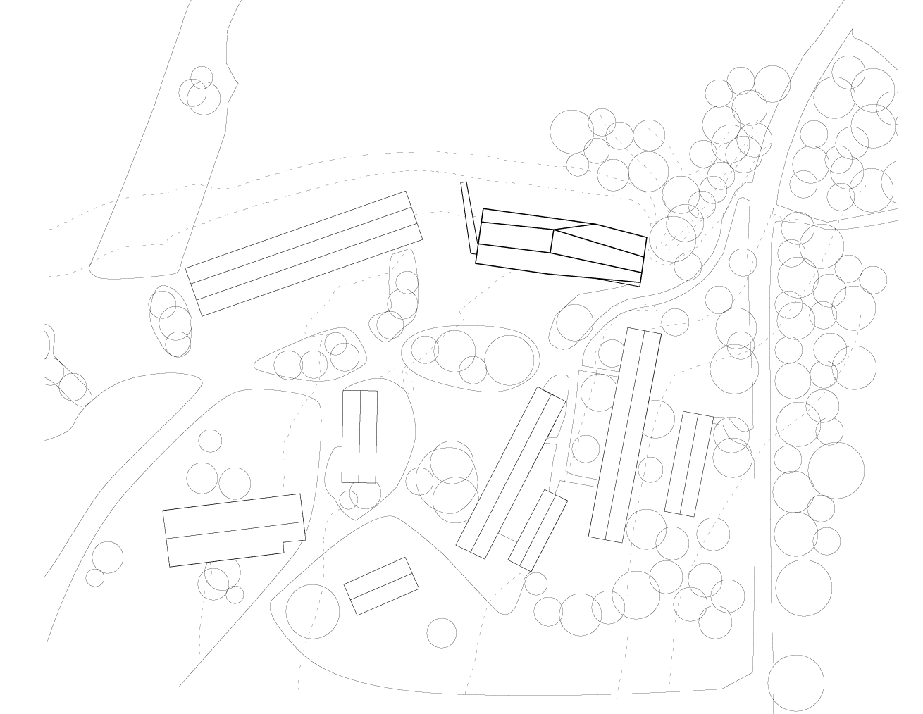 In order to stress the relationship between the interior spaces and the lush vegetation of the place, the corridors are hung from the roofing with a series of steel tie rods.