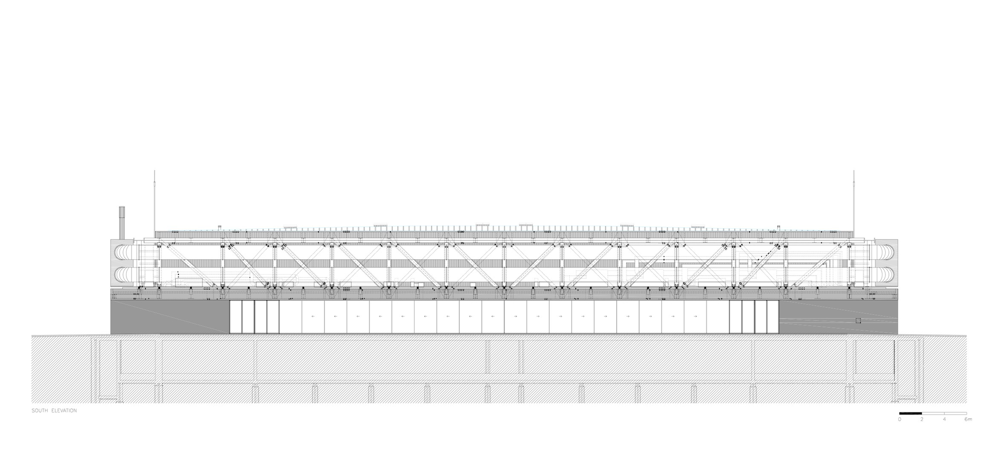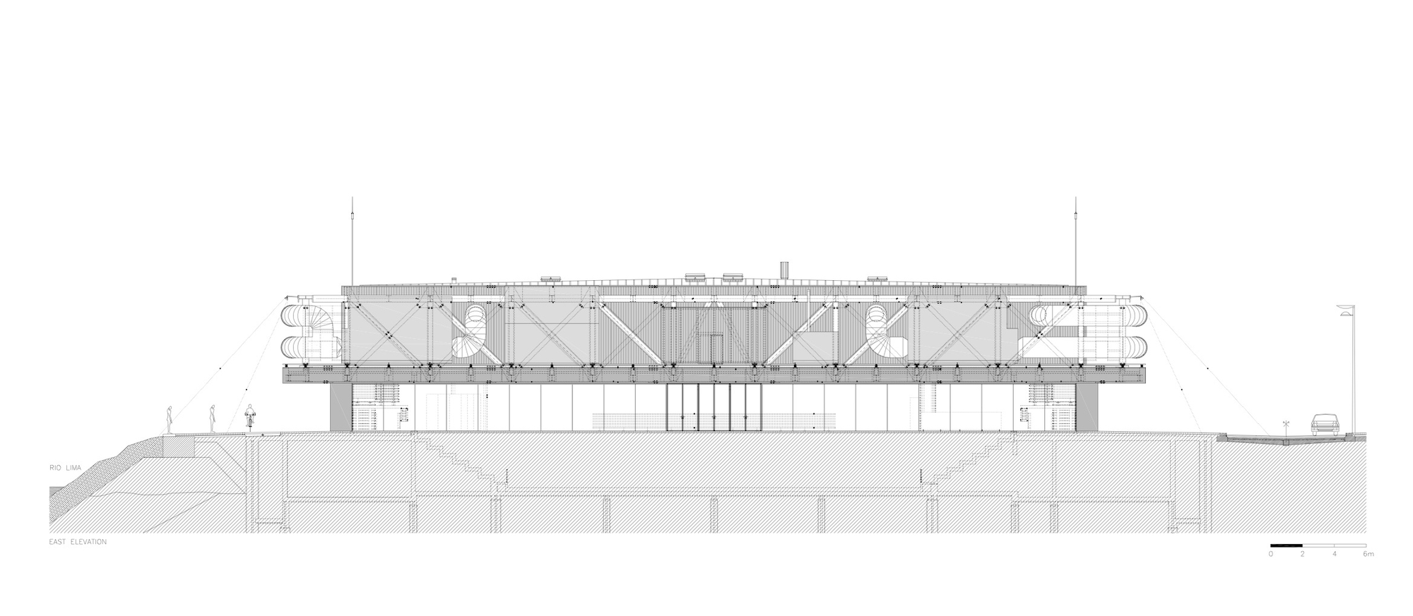 The multipurpose pavilion will be a space directed to cultural and sport events. The main accesses will be situated in the north and south extremities. The service entrances will be made in the other elevations.