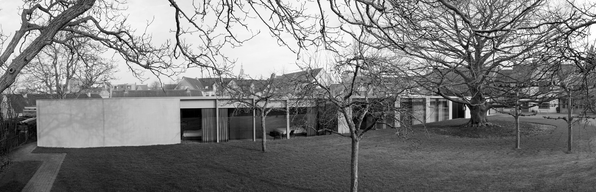 The presence of the building is reduced and merely defines spaces in terms of: in and out, in front of a wall, between a wall and glass, on one side of the inner (outer) space or the other, etc.