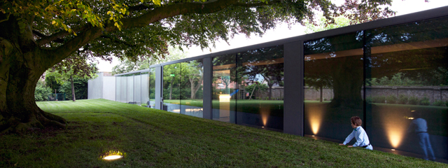 A large part of the architecture is made out of glass, a transparency that allows all the light available to enter inside throughout the branches of the tree. An overall visibility of the garden remains and the architecture of the building disappears.