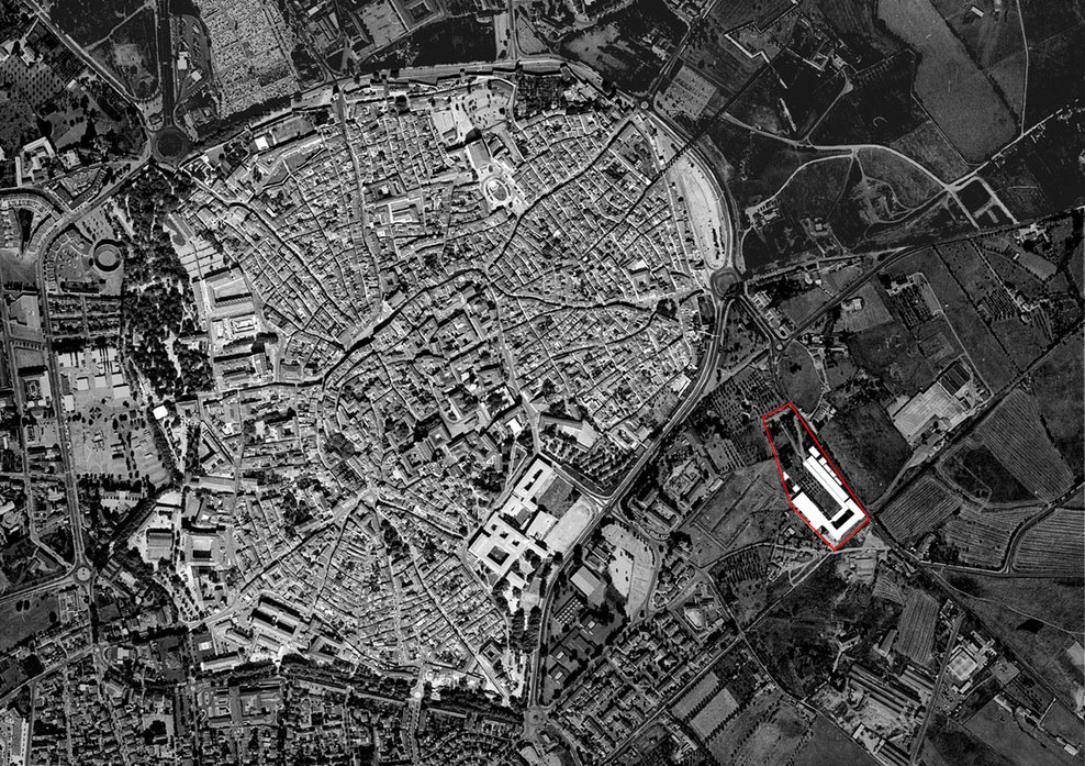 Seen from a distance from the historic centre and the approach in direction of the old Leões factory allows one to understand that, oddly enough, its principle value consists of its excessive volume that is imposed abruptly on the plateau. Buildings designed around the machines they would house, and not around people, in physical or transcendental terms, who are reduced to mere operators, workers, simple cogs in the machine.