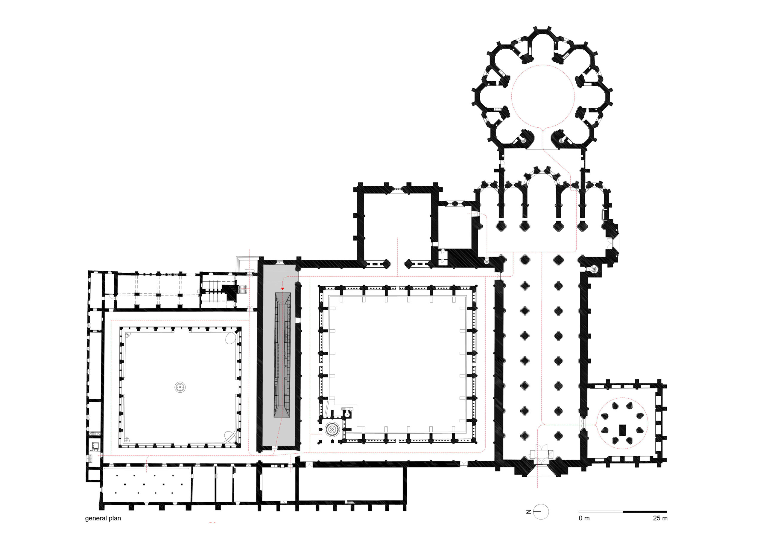 Given the historic context and in order to minimize impact on the Monastery, the Interpretative Centre appears as a flexible and autonomous structure which is slightly raised above the ground.