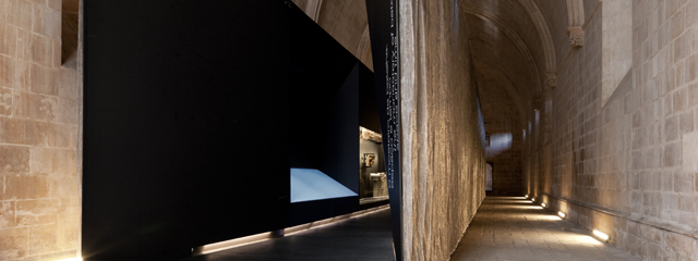 The exhibition combines original 14th century objects from the monastery – stain glass and statues (scultures) –with the contemporary language of multimedia – videos and sound – leading visitors to enjoy a true “theater of memory”.