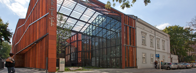 The building of the Małopolska Garden of Arts (MGA) has been constructed according to a competition-winning (Union of Polish Architects, SARP 2005) design by Ingarden & Ewy Architects. The initiative of establishing a new cultural institution in Kraków was proposed a year earlier by Krzysztof Orzechowski, Director of the Juliusz Słowacki Theatre and Janusz Sepioł, at the time the Marshal of the Małopolska Region. It is no coincidence that the building was raised in the vicinity of ul. Karmelicka – a street popular with students and locals alike – opposite the building of the public library, with the aim of ensuring its smooth inclusion into the “bloodstream” of the city.