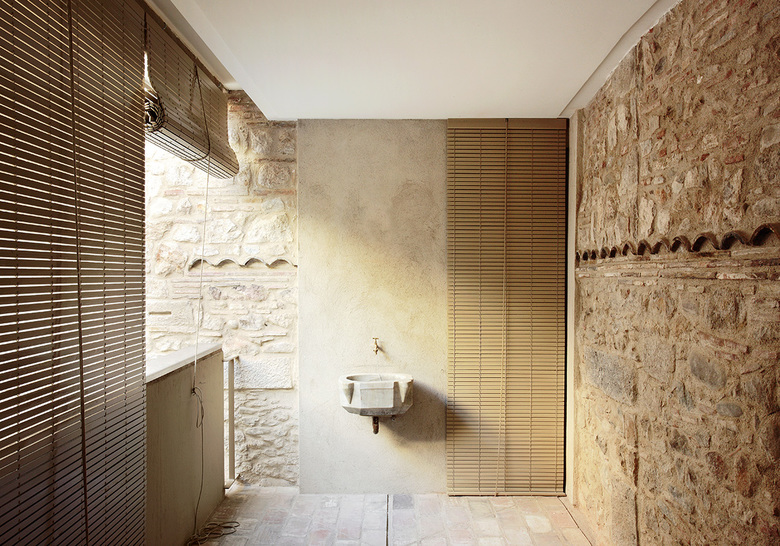 In terms of energy it was only necessary to leverage the great quality and efficiency of the existing passive systems: the thermal inertia of the huge perimeter walls, the strategic disposition of the patios, real generators of interior microclimates in the constructed mass; the clear predominance of the full over the void in all the façades; the existence of multiple crossed ventilations and the diversity of orientations in the diverse zones of the house. We complemented the existing system by means of incorporating some traditional elements to easily regulate the relationship with the exterior sunlight and temperature: wooden blinds in the outer part of the openings and opaque shutters in their interior face. With the sufficient solar protection in summer and the only contribution of the radiant flooring in winter the house attains a high grade of thermal comfort.