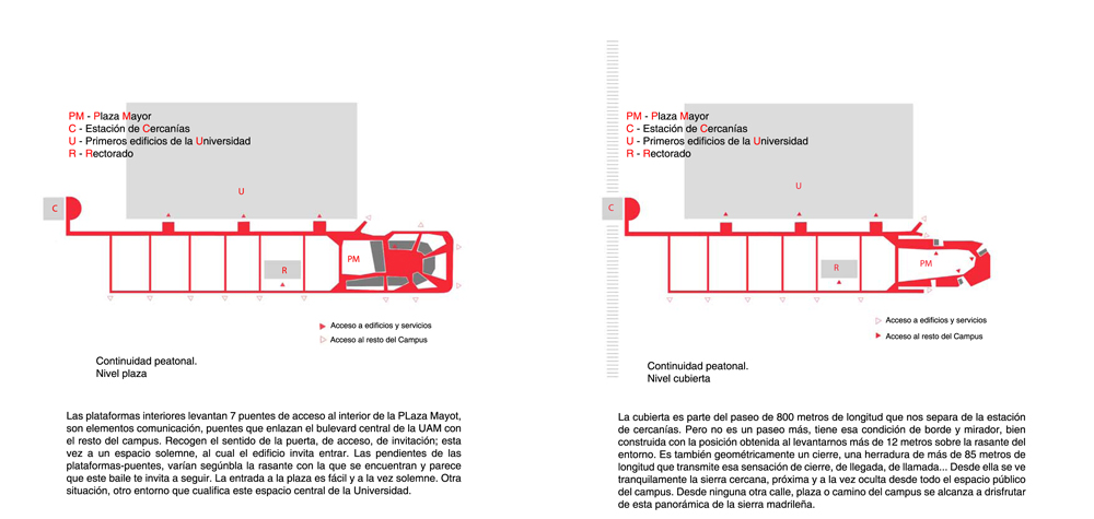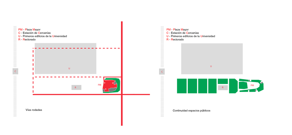 La Plaza Mayores el nuevo centro de servicios de la Universidad; debe manifestar su carácter simbólico y representativo, sirviendo de referencia dentro de la estructura del Campus.