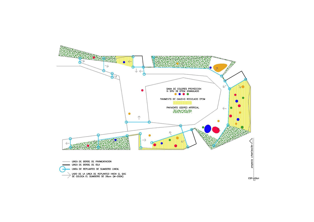El pavimento publico: hormigón desactivado in situ y prefabricado / plantación vegetal /césped artificial / pavimentos de caucho.