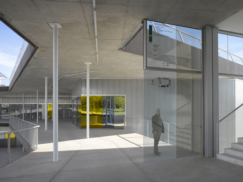 Ligeros, y casi imperceptibles, intentan desaparecer, reforzando la percepción unitaria de cada isla sobre las plataformas. Las compartimentaciones interiores no llegan físicamente a tocar la piel exterior de vidrió y policarbonato.
