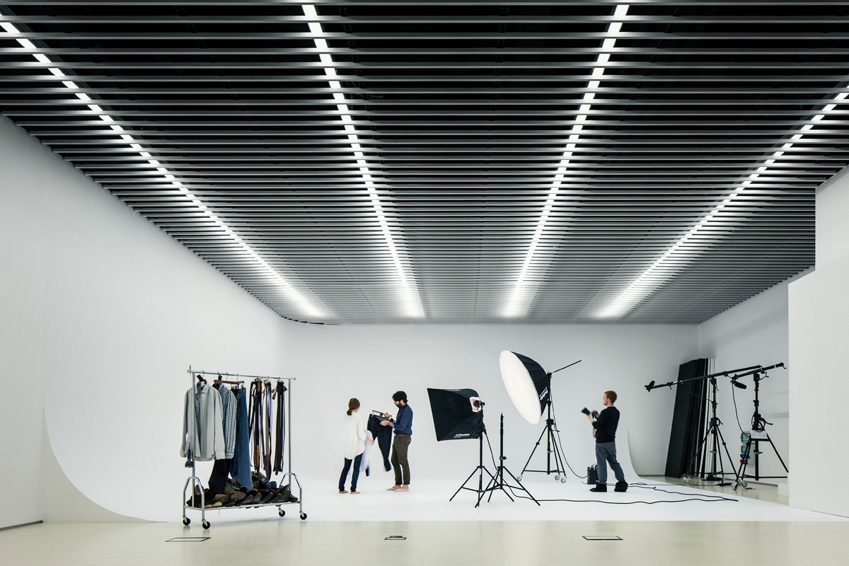 La franja norte es una pieza diáfana de unos 35 m. de anchura y 220 de longitud en la que se desarrollaran las actividades de diseño y desarrollo de producto, esta pieza dispone de la iluminación natural que le proporciona la fachada acristalada a norte. En esta pieza, autentica protagonista del edificio se desarrolla la actividad de diseño, es el corazón de la compañía y la neutralidad de los materiales de paredes, suelos y techos permiten que las piezas de ropa destaquen y se puedan percibir de manera clara y sencilla.