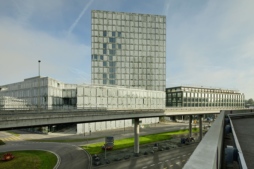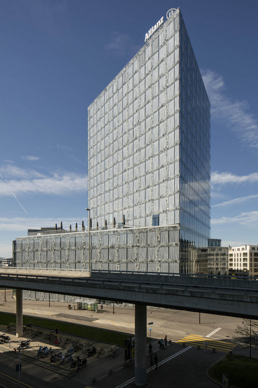 The Allianz Headquarters is a hybrid-office and the pinnacle of a master planned mixed-use dis- trict on the edge of Zürich’s city center. Comprised of a 20-story tower and a 5-story annex, these two components are externally linked by a series of four bridges, and vertically linked by numerous interior voids and staircases; as such, the Allianz Headquarters can be experienced as horizontal and vertical landscape of neighborhoods. Fluidly connected to the city center by a multitude of public transportation options, the building encourages the blossoming of twenty-first century of- fice culture, which demands flexibility in space and its use, via its hyper-hybrid programming that amplifies ‘interiority’.