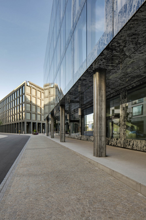The entire lobby and ground floor are publicly accessible, ensuring a continuous animation throughout both, which compliments the adjacent public square. A central staircase rises from the lobby up and into the 20-story tower, allowing employees to, if desired, meander throughout all levels of the office without entering its core. A café and restaurant are located on the fifth floor, rather than within the lobby, which creates a buffer zone between public and non-public areas. A ‘business center’ is located one floor below, and contains meeting rooms for use with external clients. This ‘business center’ enables employees to meet with their guests, without the need for elevators.