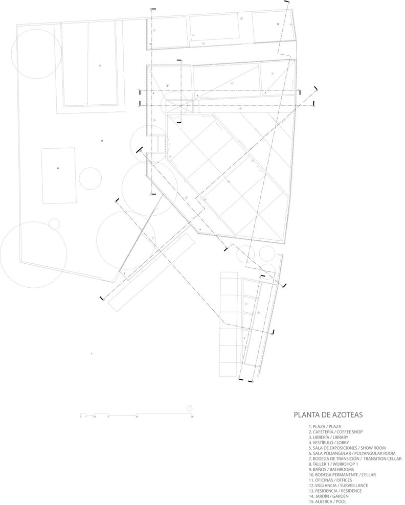 This is how Siqueiros himself defined this workplace, now a museum, workshop and artist’s residence focused on art production and criticism. By opening up the courtyard, the museum yields a space for shared activity, while also appropriating the plaza. The murals, originally intended for the outside area, now have a dual role: firstly, as a visual and programmatic link with the plaza, by containing the public areas of the museum (café, bookshop and store) and secondly as a wall/program that separates the artist’s residence from the museum and workshop. Rotating the murals puts into play the symbolic elements of the façade’s architectural syntax, altering the typical relationship between gallery and visitor at the same time. Like the exterior, the gallery space-from both an exhibition design and artistic point of view-unfolds and generates new relationships and spatial connections. The distribution of these spaces and the interplay of planes-in murals and walls-is revealed in crossing a perimeter lattice that delimits the urban surroundings, a single horizontal sculptural piece that contains and displays Siqueiros’ work.