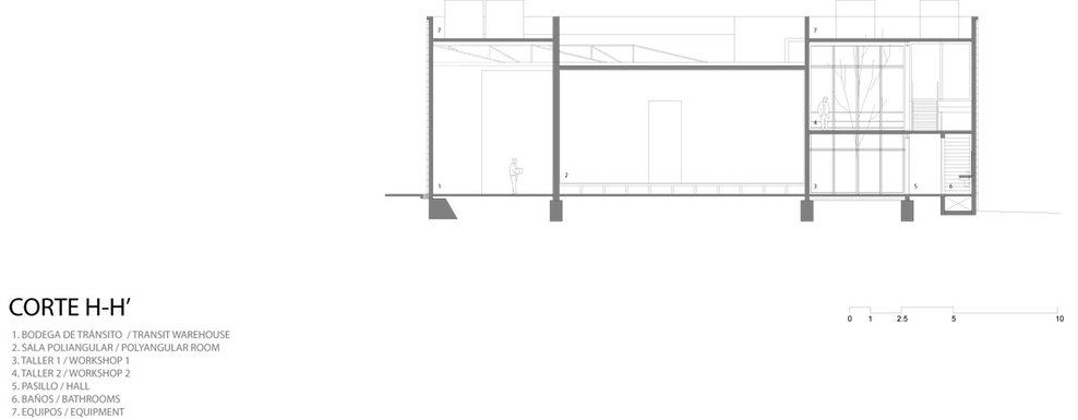 La Tallera Siqueiros generates a Relationship that reconciles a museum and workshop with the surrounding areas by means of a simple gesture: opening the museum courtyard onto an adjacent plaza, and rotating a series of murals from their original position. The space itself was built in 1965 and became the house and studio of the muralist David Alfaro Siqueiros during the final years of his life. La Tallera is “an idea Diego Rivera and I came up with in the 1920s- to create a real muralist workshop where new techniques in paint, materials, geometry, perspective and so on would be taught”.