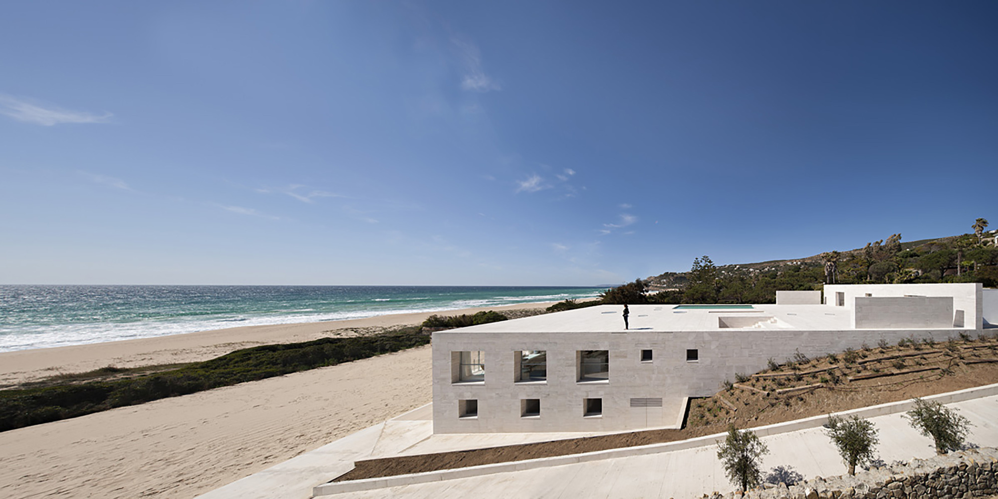 On a marvelous place like a piece of earthly paradise, at Cádiz, we have built an infinite plane facing the infinite sea, the most radical house we have ever made. At the very edge of the waters of the Atlantic Ocean, where the sea unites the new and the old continent, emerges a stone platform. At the place where all the ships from the Mediterranean used to pass and still pass by as they head off into the Atlantic.