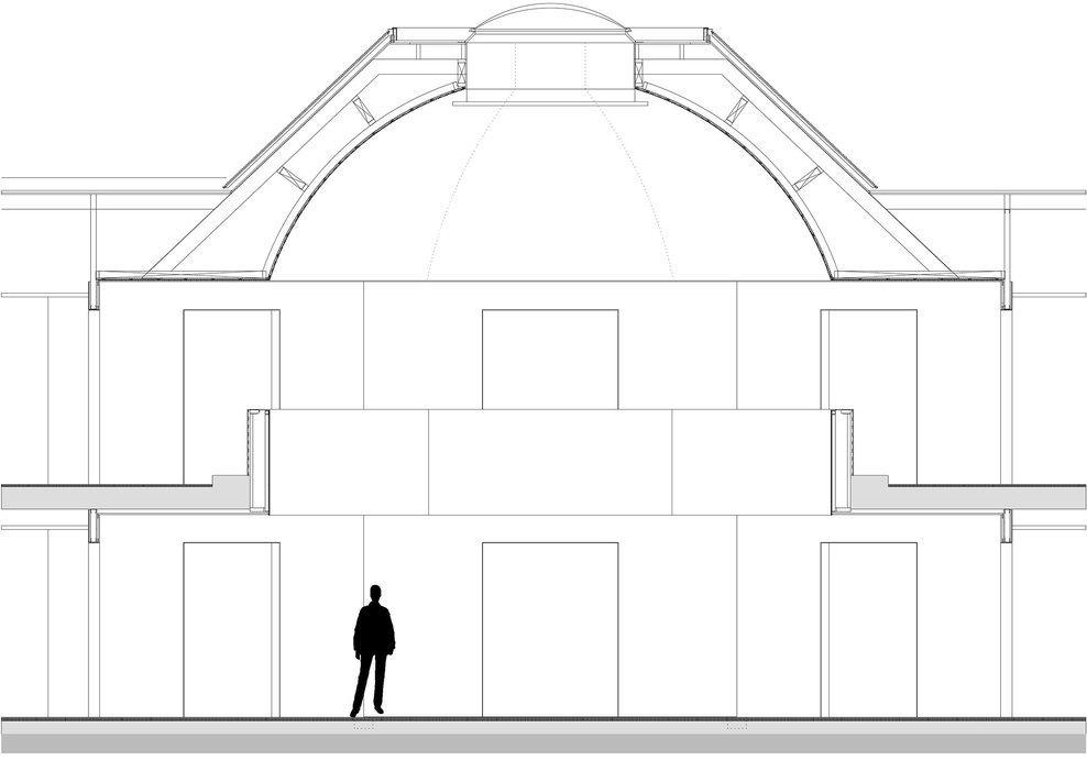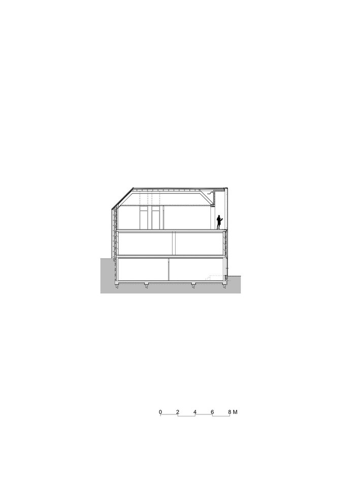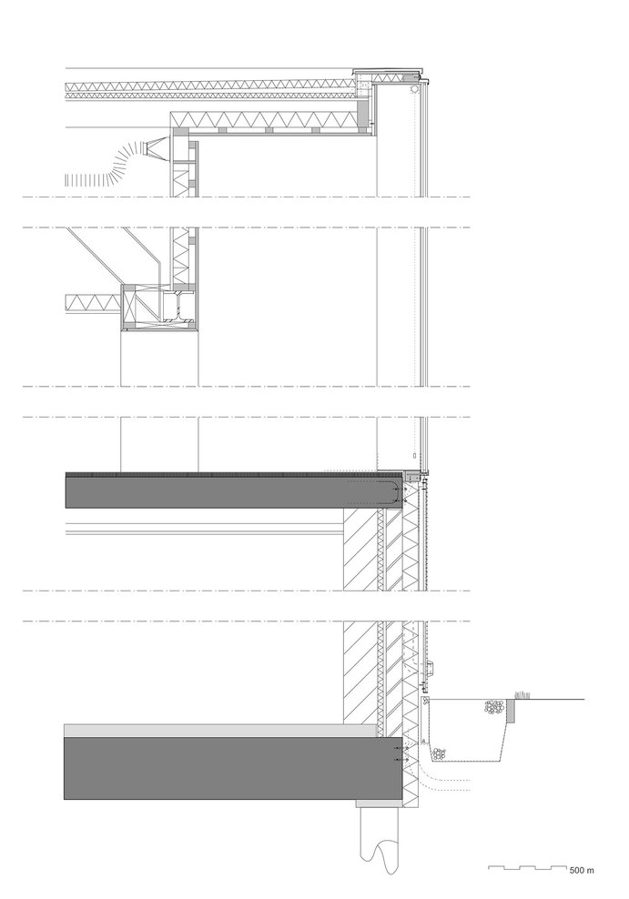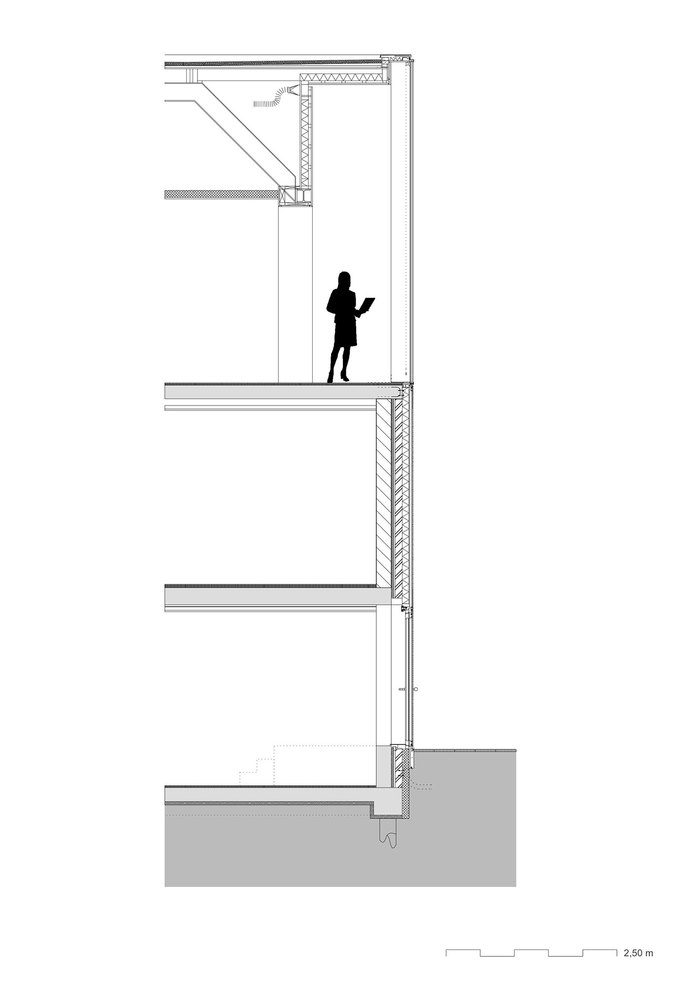 Above all, the goal of the transformation was to improve the overall impression of the poorly designed and run- down building. For these reasons, in 2009 the municipality organized a European architecture competition, which was won by Atelier Kempe Thill from Rotterdam. While at that moment it was still intended to extend the existing building, this was given up due to financial reasons during the planning phase. The task turned out to be a very delicate challenge for the architects. Due to the tight cost frame, the existing geometry of the building had to be preserved to a great extend. Therefore, structural or spatial interventions were hardly possible. The task was rather to aesthetically and technically improve the existing surfaces and thereby also the overall impression of the building. The existing basic form of the building was hardly evident and had to be reinterpreted and conceptualized, in order to strengthen the spatial integration of the town hall within the surrounding of the village. Similar to many projects of the Italian Renaissance, the central idea was to fully wrap the building with a new, more monumental façade, to emphasize the public and representative character of the building and thus to make the building become architecture. Furthermore, the new façade was not merely seen as an instrument to improve the exterior impression, but also to positively affect the quality of the interior spaces and the workflow of the government employees.