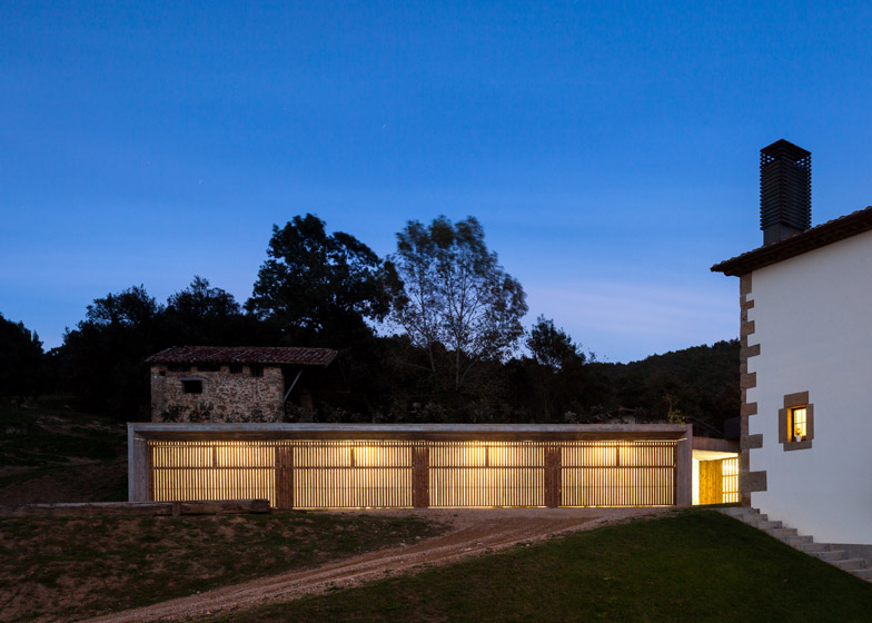 Arnau Vergés was asked to create a multi-purpose outbuilding next to a 17th-century farmhouse in La Vall d’en Bas, a municipality in eastern Spain, as part of a renovation and extension project called Farm Surroundings.