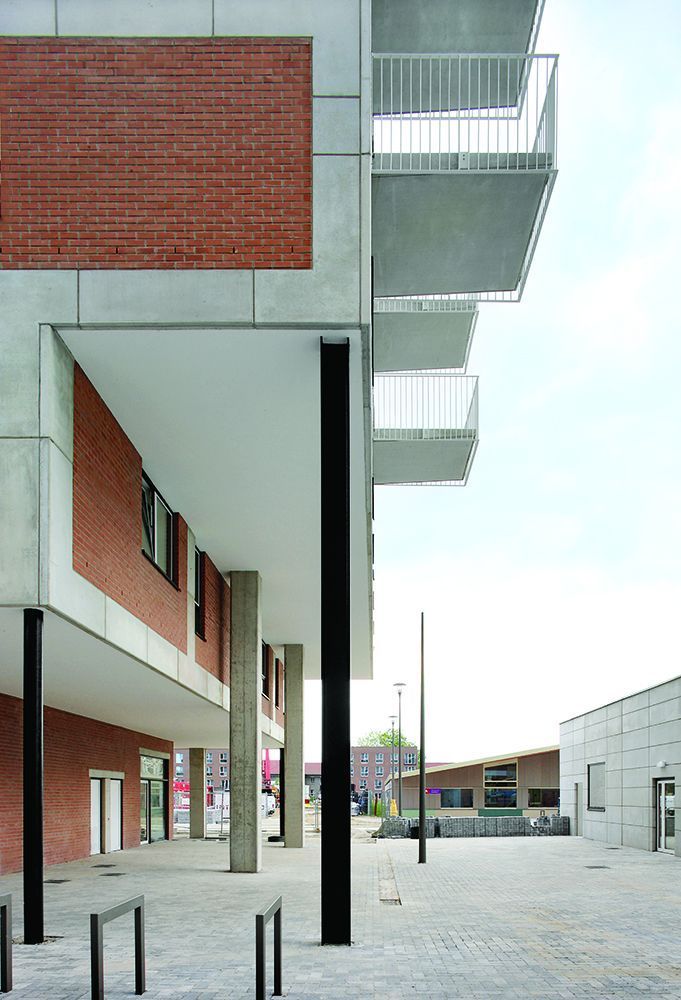 In the public consciousness, at 27 storeys and housing nearly 220 families, the largest of the Europark’s 18 slabs, the Chicago Block, was synonymous with the area’s decline – becoming as notorious for what got thrown from its heights as the height itself. But with the fridges and TVs cleared, there now sits at the foot of the tower something that on the face of it is just as confronting. Architect De Vylder Vinck Taillieu’s €7.5m assisted housing and community centre is one part of the wider, ongoing, IGLO (Inter Generational Linkeroever) initiative. This attempts to reclaim the dead interstitial areas between blocks and convert them to community use: open heart surgery of elderly housing, kindergartens and shops – an effort to stitch the fragmented Europark back together.