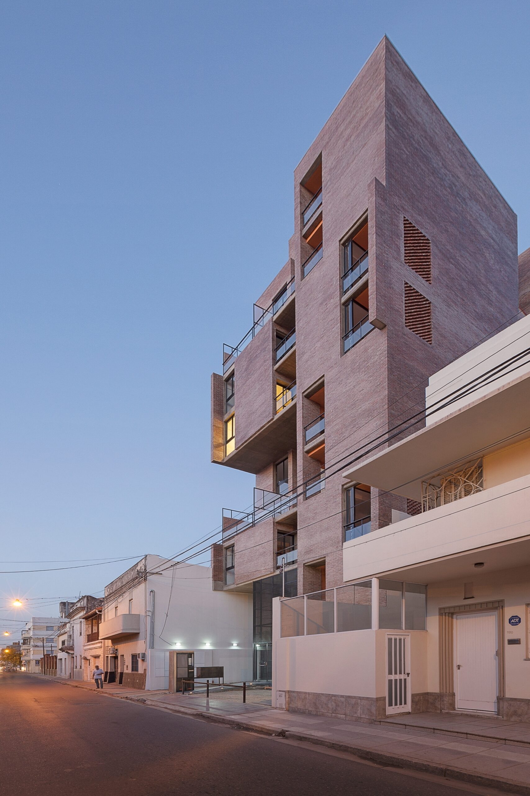 La conjugación de dos plantas tipo de diferentes prestaciones, en cantidad y ubicación en altura, genera distintas variables formales que buscan adaptarse a los cambios que todo proyecto de inversión sufre en su proceso.Ambas opciones de pisos, se conforman en torno a un vacío central, que en uno u otro caso se abre hacia el frente, al costado, o al contrafrente, permitiendo visuales hacia diferentes puntos en cada nivel y ventilando todo el conjunto desde su interior. Al ubicar en dicho espacio central circulaciones verticales y horizontales, se busca reemplazar el núcleo típico cerrado y oscuro por un vacío que explota en múltiples direcciones, y deja entrever desde diferentes puntos de la ciudad la estructura interna de un conjunto habitacional que aspira convertirse en vecindario.