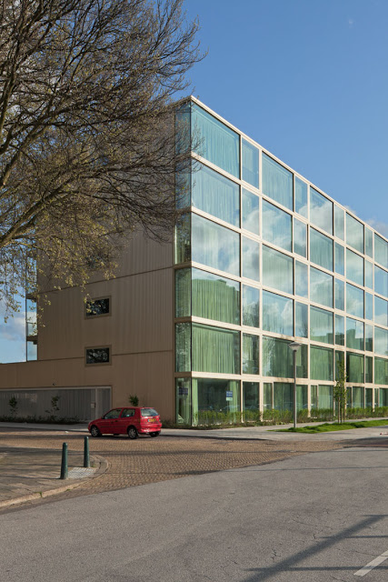 En las dos fachadas principales que dan a Erasmusweg y Wildenborghstraat respectivamente, el acristalamiento domina la fachada. Esto proporciona al complejo una distinción pública y un carácter al exterior, mientras que los dormitorios se caracterizan por su carácter privado hacia el interior. Los grandes acristalamientos tiene una relación armoniosa con el conjunto del edificio, lo que significa que la escala total puede ser fácilmente comprensible para los observadores.