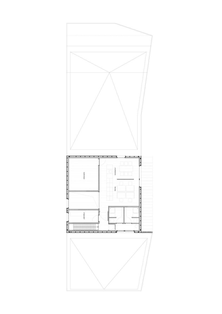 All that under a moving roof line that delineates the building in the context of its surroundings. Like stables adjoining a farmhouse. In wood.