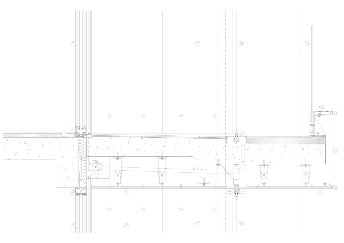 The Seine-facing facades comply with the generic rules regarding urban continuity. Reflecting the scale of the site, they are linear, fully glazed and protected from the sun by the overhanging balconies. The bays form a repetitive pattern echoing the horizontal expansion inherent to the river. A second skin, also glazed, creates an intermediate space, where the freely positioned walls offer scope to modulate the size of the inner space, from season to season. The resulting depth differential of the facade reintroduces the notion of transversality and engages the building in a dialogue with the island.