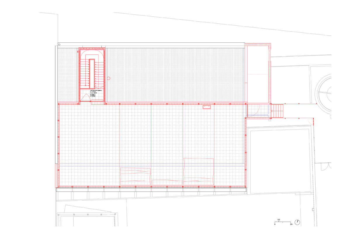 Nos interesa esta materia preexistente cómo elemento constructivo con alma, y nos fijamos cómo objetivo central de la intervención, tanto en el interior cómo en la fachada preexistente de la calle, sacar partido y potenciar la relación –y la tensión- entre las partes antiguas y los nuevos añadidos (imprescindibles).