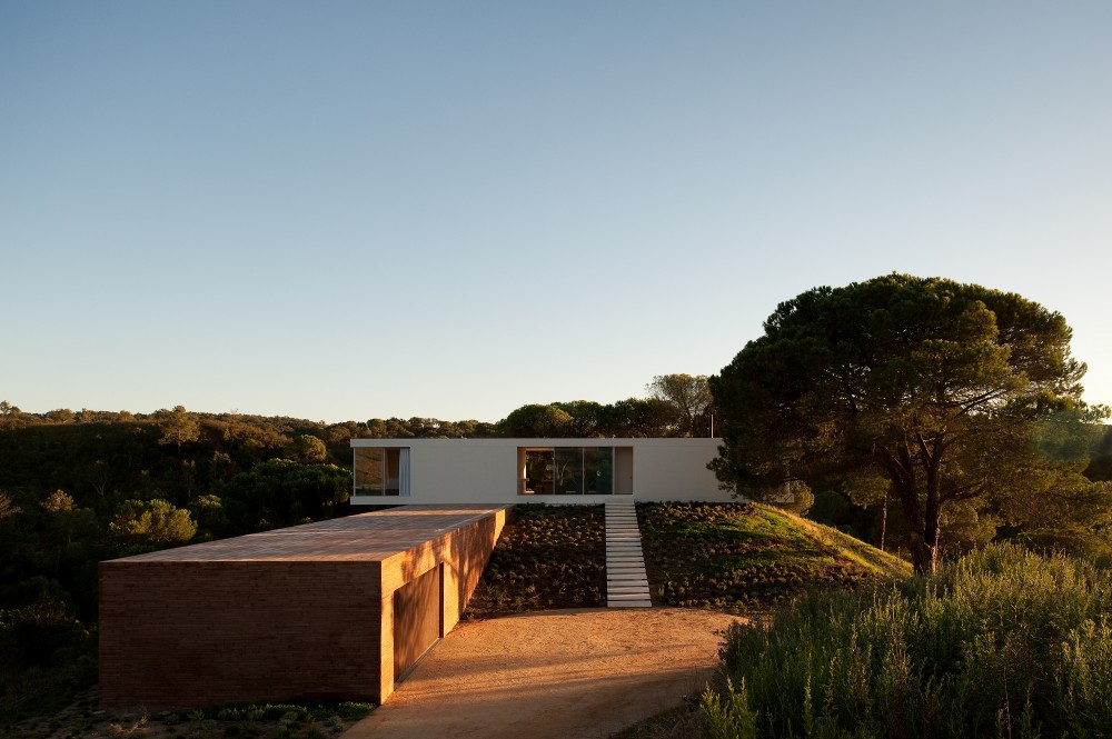 La casa en Melides, en la costa sur de Alentejo, representa el deseo de una casa de vacaciones como el escape del bullicio de una gran ciudad. El cliente tomó una decisión inusual al llamar a un concurso entre tres distintas oficinas, permitiendo una decisión dentro de un rango más amplio de posibles soluciones. Esta propuesta ganadora presenta una lectura del “drama” del terreno natural, construyendo sobre la cima de una colina relativamente protegida por la “rugosa topografía” circundante.
