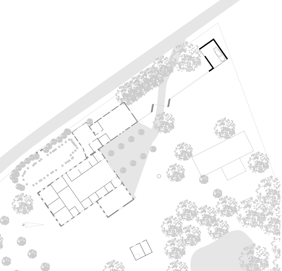 The new pavilion is used depending on the season for storing and editing of firewood, for parking of tractor and agricultural implements to grasland maintenance, for parking cars and in summer, when the room is empty, as a garden loggia for receptions.