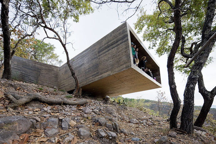 For construction, we imagined a monolithic element, more like infrastructure than architecture. In actuality, we have considered collecting water in the extreme of the cantilever; the accumulated water in the shade will function as a horizontal mirror introducing at least at some moment in the year a kind of shine to an otherwise opaque structure.