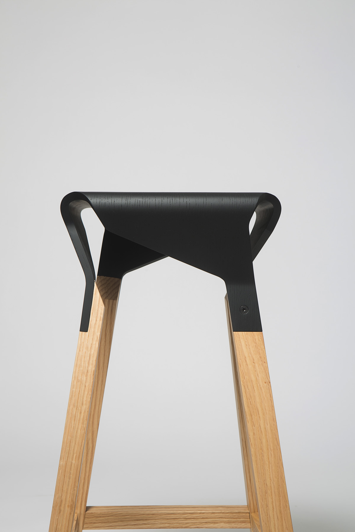 Naoshima es una colección de taburetes para contract y uso residencial que experimenta con el potencial estructural y expresivo de la madera contrachapada curvada.