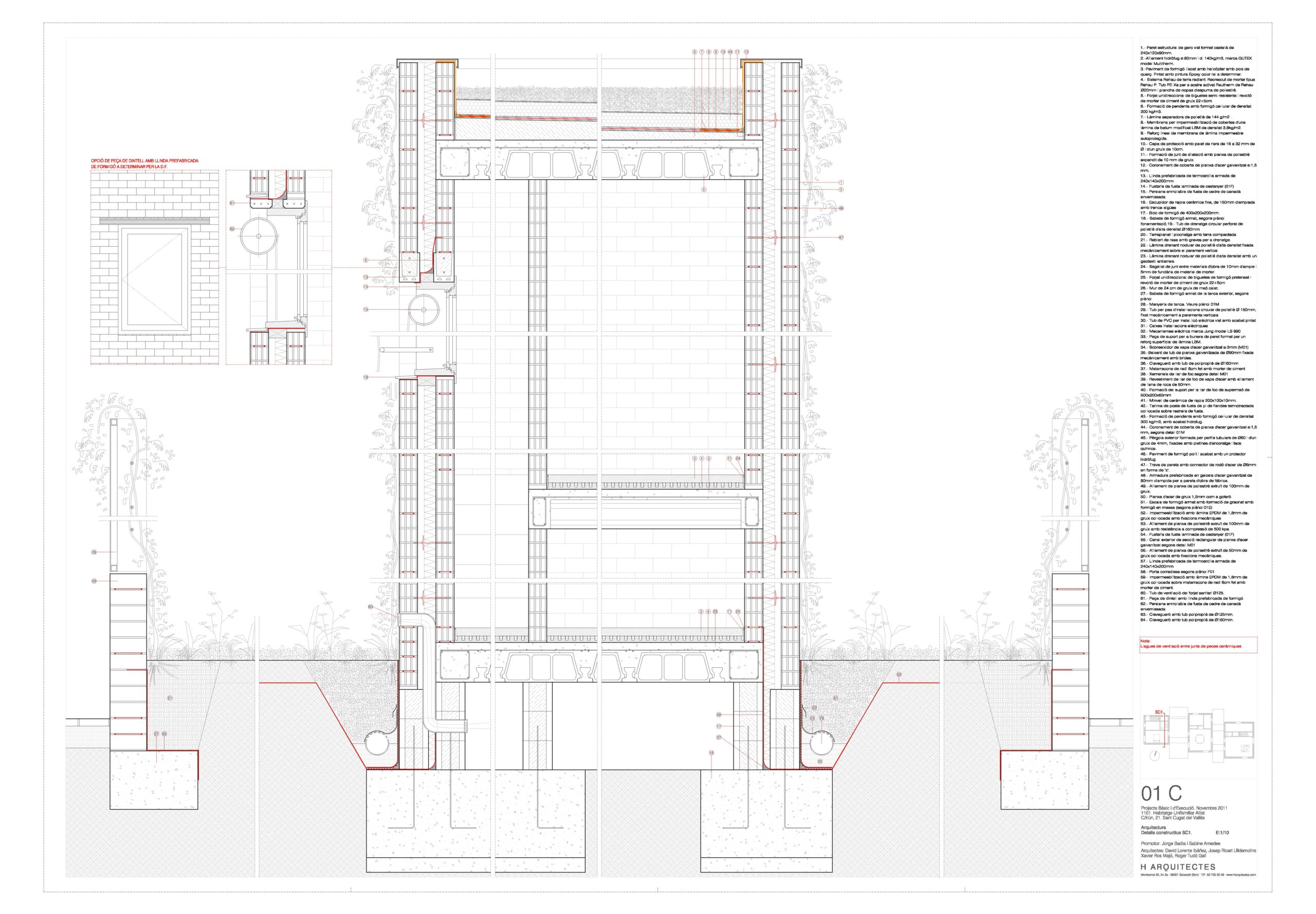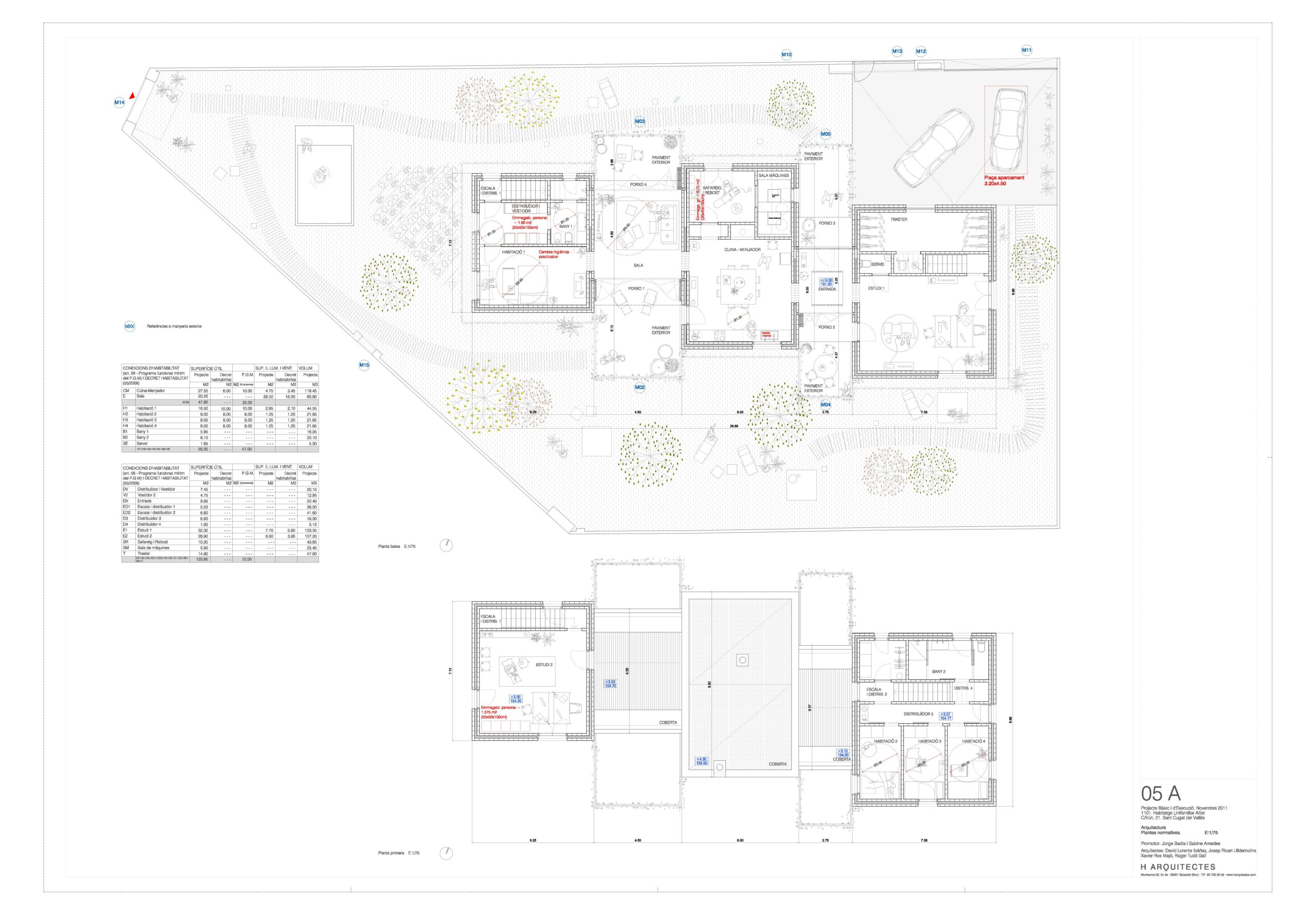 Una urbanización de casas unifamiliares aisladas a un cuarto de hora de coche del centro de Sant Cugat. La altura y la distancia de la casa respecto de la calle y sus vecinos viene determinada por una normativa diseñada a la contra de una arquitectura de pésima calidad que, de todas maneras, aparece siempre firmada por algún arquitecto y avalada por un colegio profesional que habrá visado y cobrado el proyecto como garante de un grado cero de arquitectura que no tiene en cuenta ningún criterio calificativo. El arquitecto ha de negociar la forma de la casa a través de una especie de juego que consiste en inscribirla en un volumen normativo que desconfía de cualquier criterio profesional y reduce la arquitectura a un juego de relaciones con un entorno presto a la tensión social entre unos habitantes que, invariablemente, querrían a su vecino veinte o treinta metros más legos de donde está realmente.