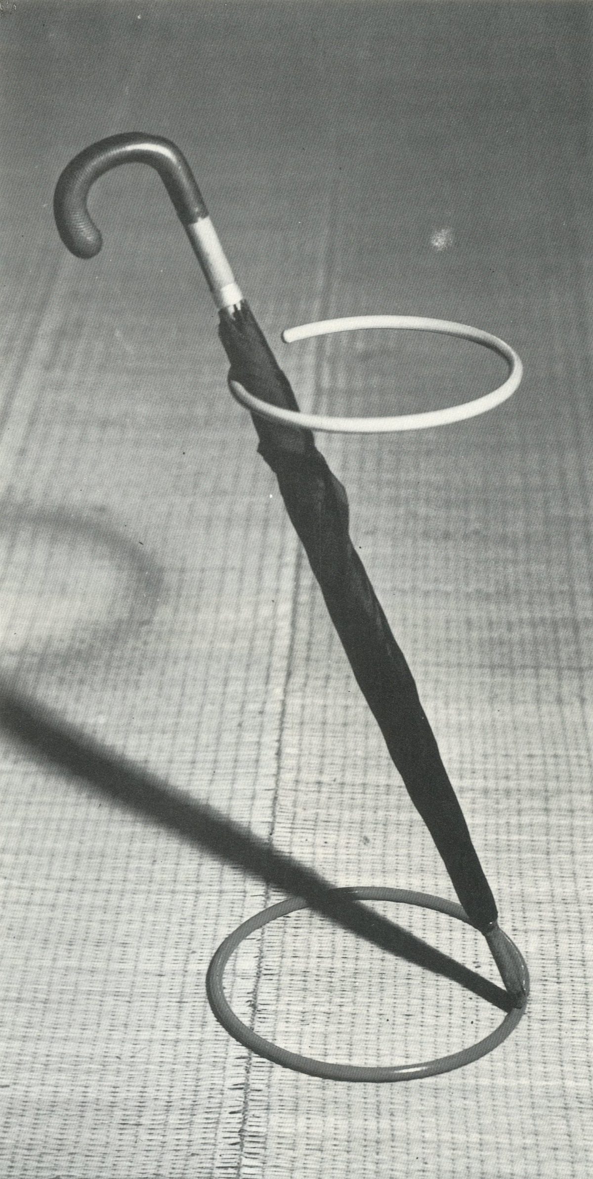 Tubo de hierro pintado. Con unos elementos simplísimos se consigue una imagen llena de sugerencias: el soporte parece lo soportado, la estructura parece estar en el aire. La sensación inmaterial que tanto preocupaba a Breuer queda enunciada con inusitada precisión y, además, se le añaden connotaciones plásticas dentro del espíritu de Brossa, Dau al Set o el primer Tàpies.