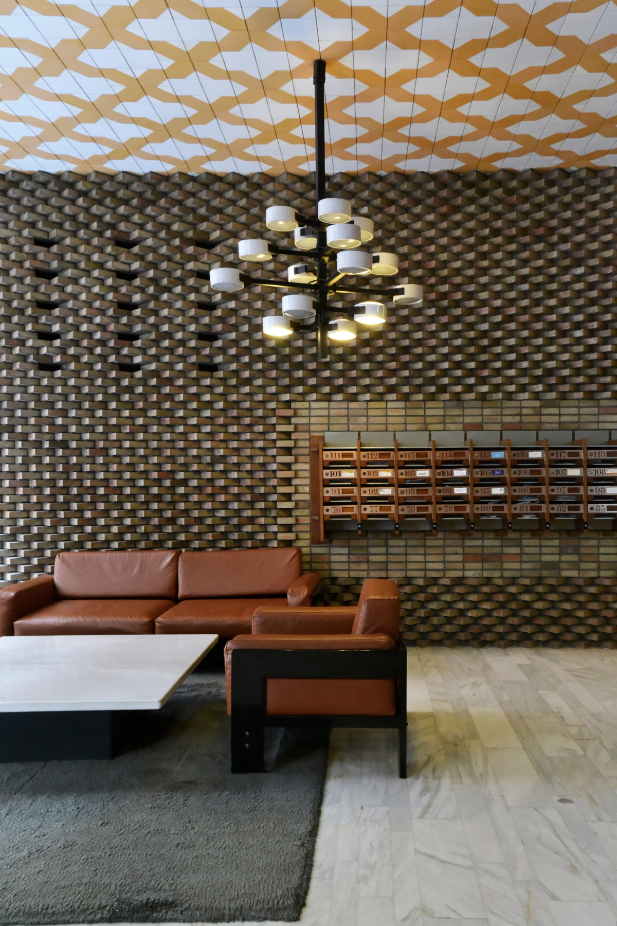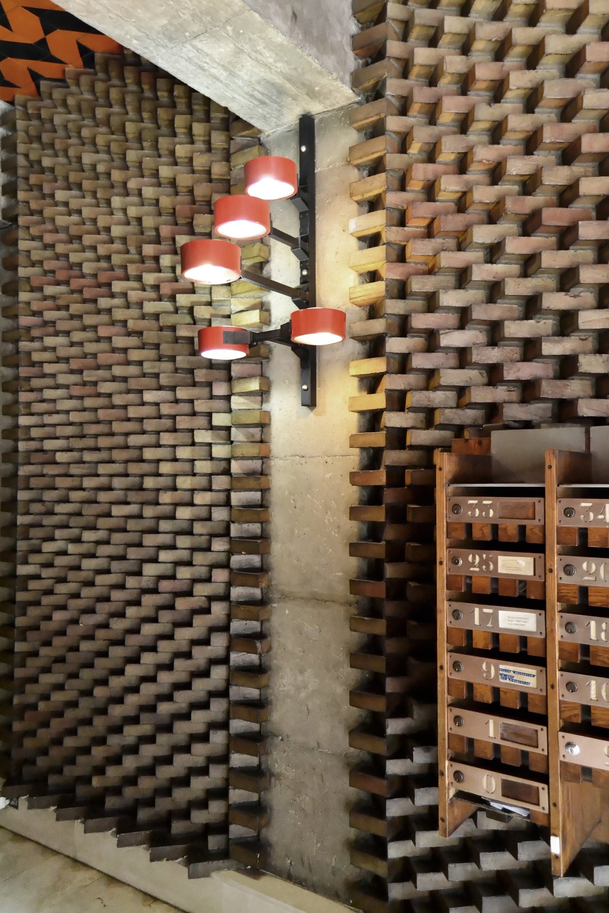 Constituido por módulos colocados en unos soportes verticales, éstos permiten desplazamientos en el mismo sentido, de modo que las posibles composiciones sean variables dentro de su propio orden. Estas disposiciones se complementan con el tratamiento de los muros donde se emplazan, creando superficies continuas de tramas y texturas.