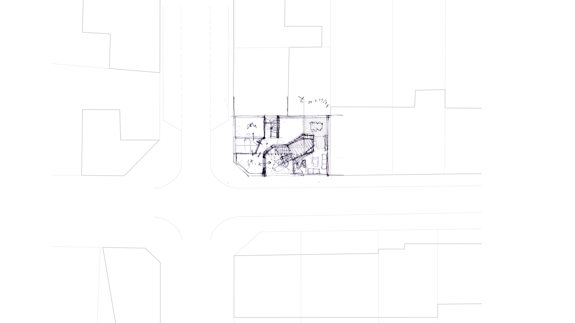 La vivienda existente tiene forma de « L » y está enteramente alineada sobre la calle principal, donde desarrolla su altura maxima de dos plantas y media. Al retornarse sobre la otra calle marca singularmente ese ángulo urbano para luego retroceder de un par de metros y descender su altura hasta un solo nivel.