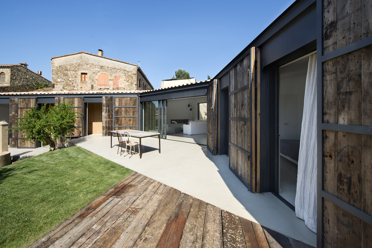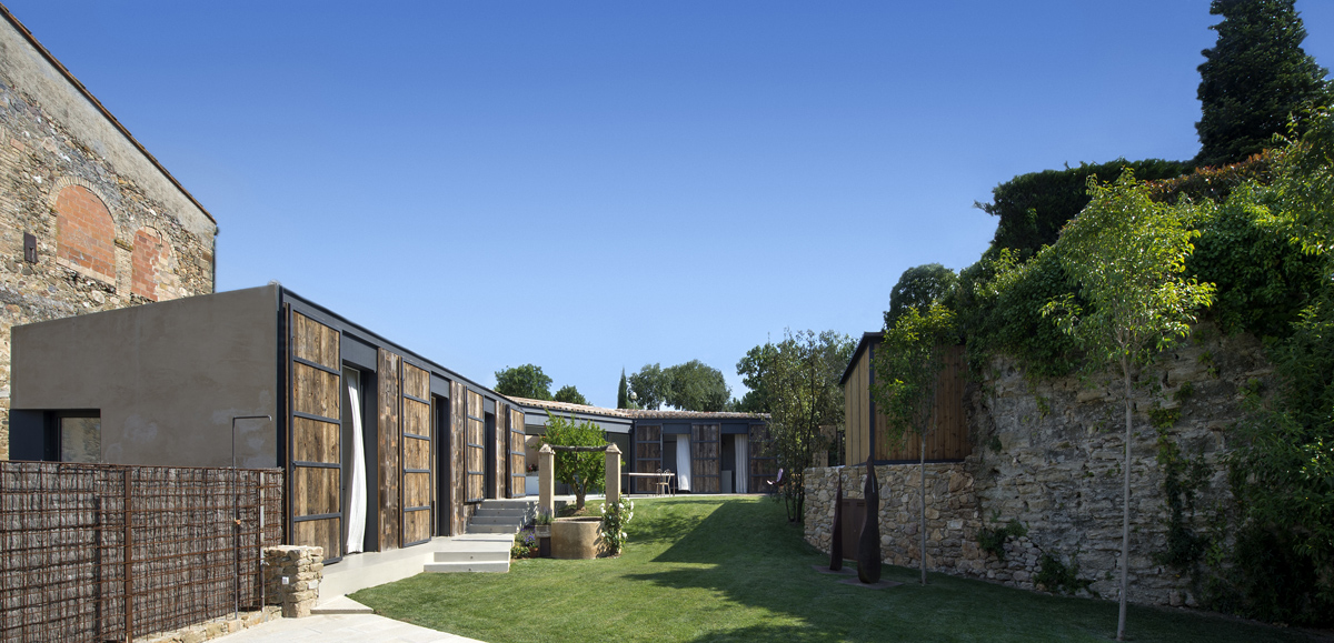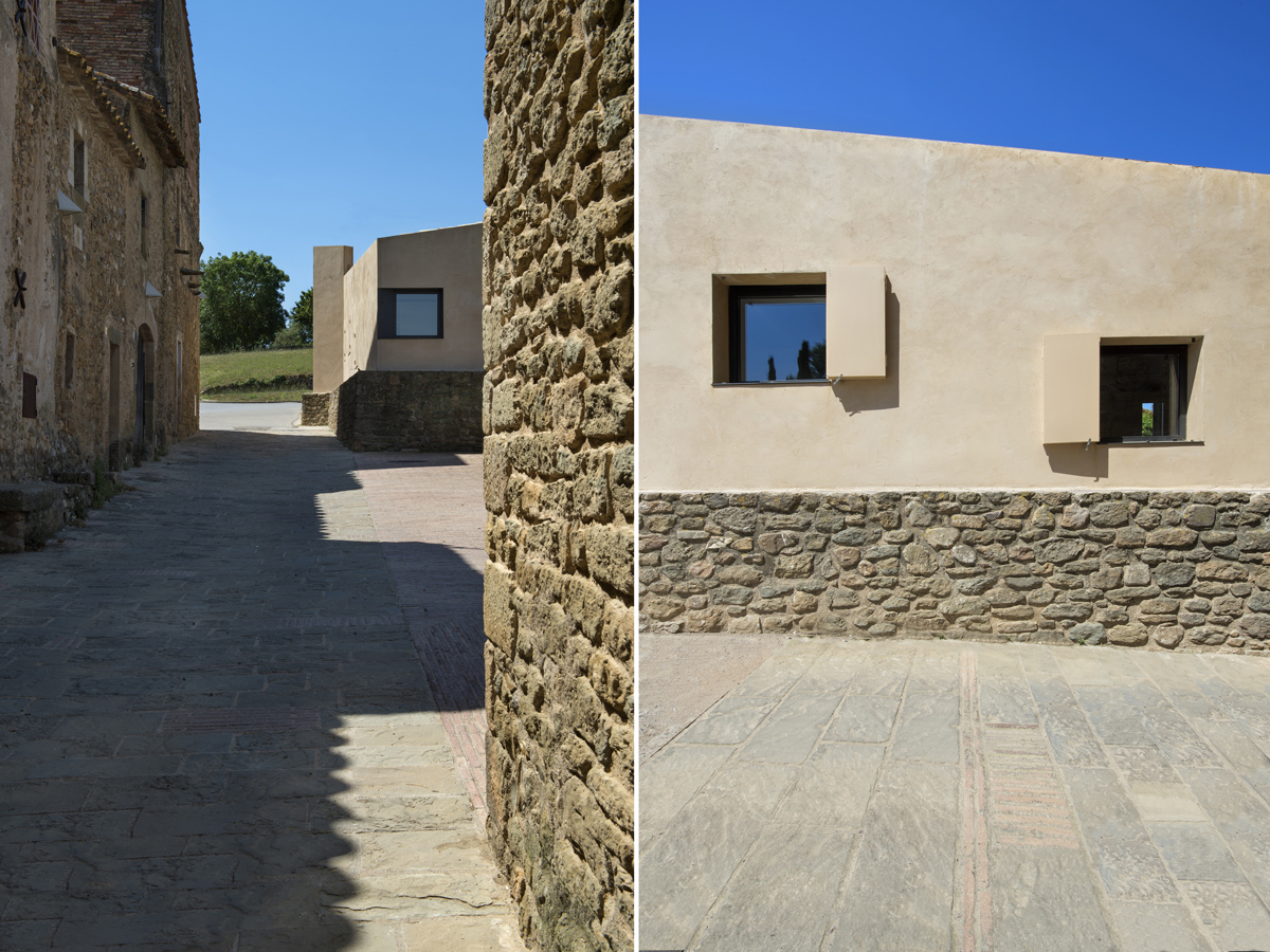 En el límite del tejido histórico de la localidad de Monells en el Baix Empordà, se completa una parcela existente con la construcción de una vivienda unifamiliar. La ocupación de la parcela atiende a los límites existentes del tejido urbano, consolida las calles y se abre al patio interior. Aparece un patio privado, que linda con la calle, y compensa la orientación norte de la vivienda. La geometría de una sola planta abraza el solar y libera el jardín interior. La adaptación a la topografía existente y la atenuada presencia de la edificación permiten integrar lo nuevo con lo existente.