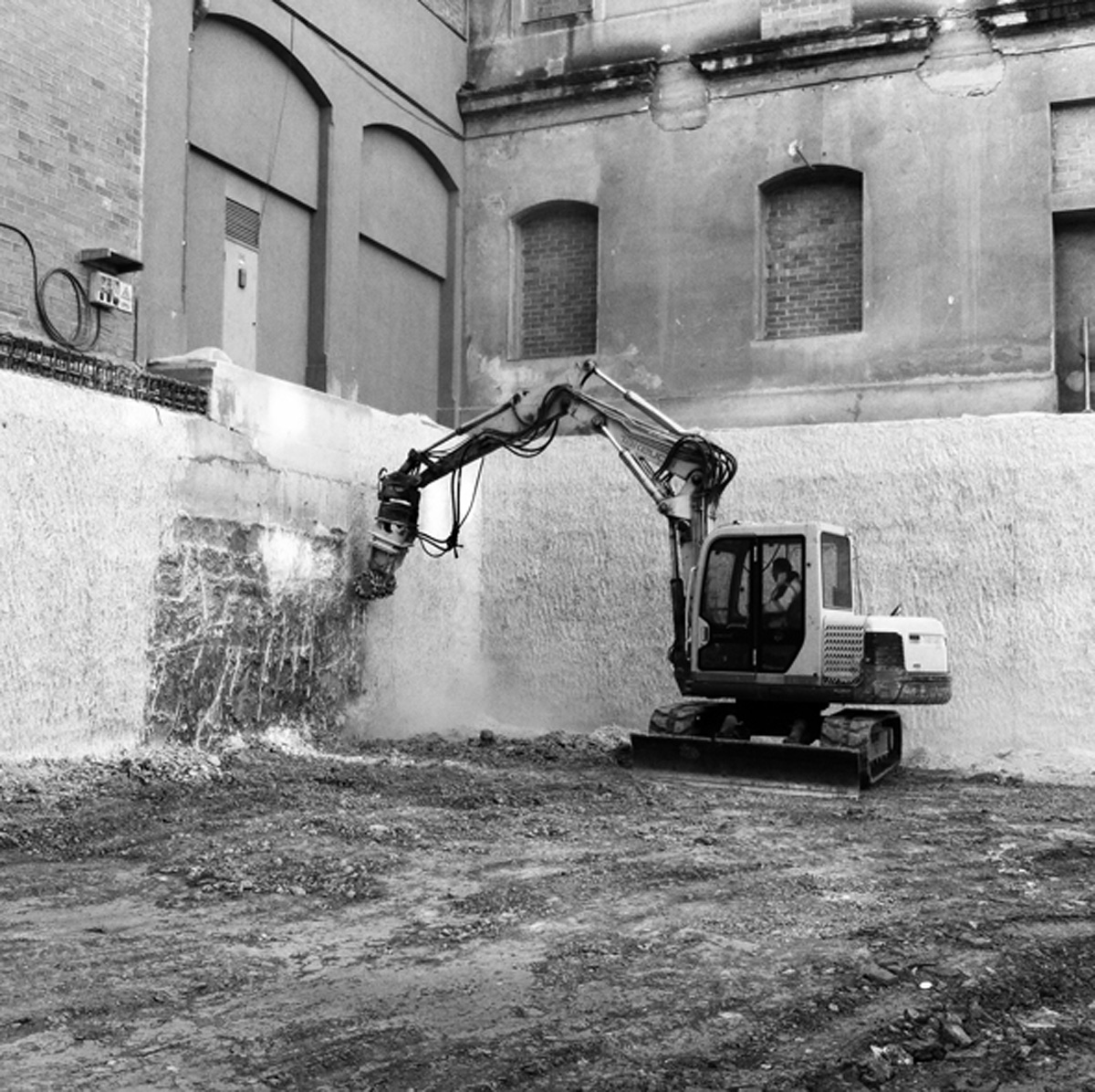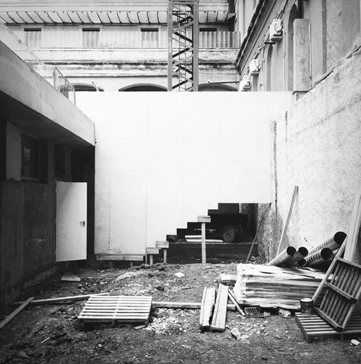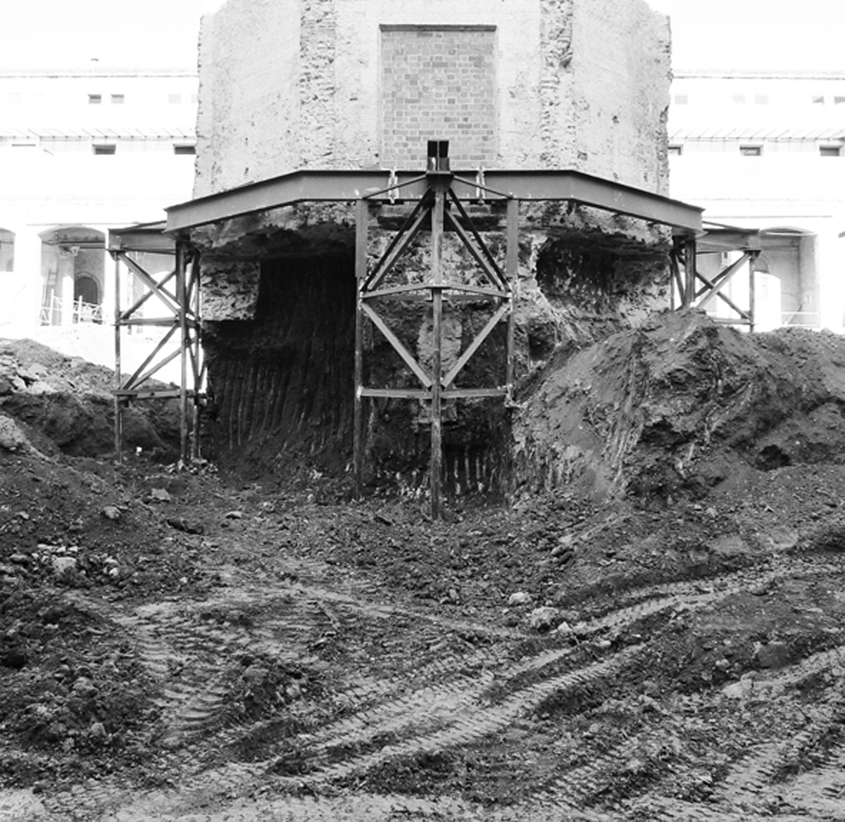El buidat del pati central implica el suport de les edificacions existents mitjançant murs pantalla de formigó armat en tot el seu perímetre. Aquests murs queden arriostrats mitjançant unes passeres de formigó armat, que connecten els edificis perimetrals amb la plaça central. Alhora la plaça és la coberta de l’equipament soterrat. Tota l’estructura és de formigó vist. La coberta i les passeres son acabat sorrejat, les pantalles són fresades i a l’interior l’estructura de formigó te un acabat vist amb encofrat fenòlic.