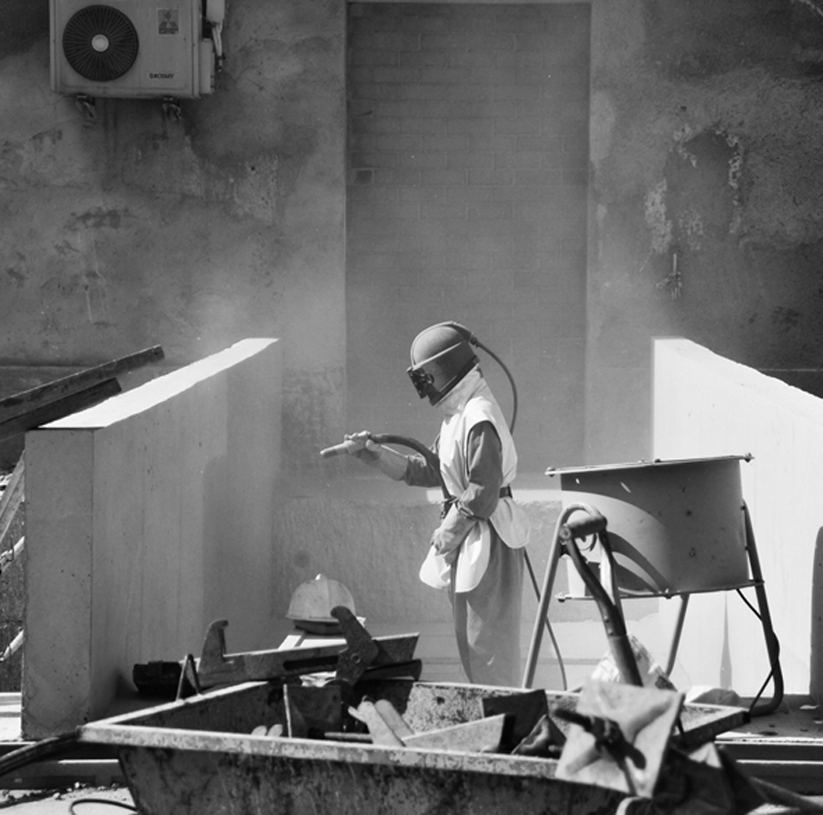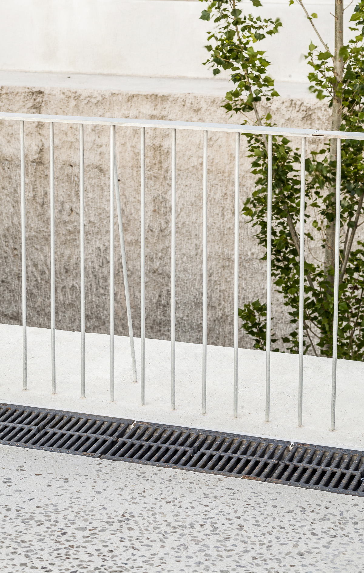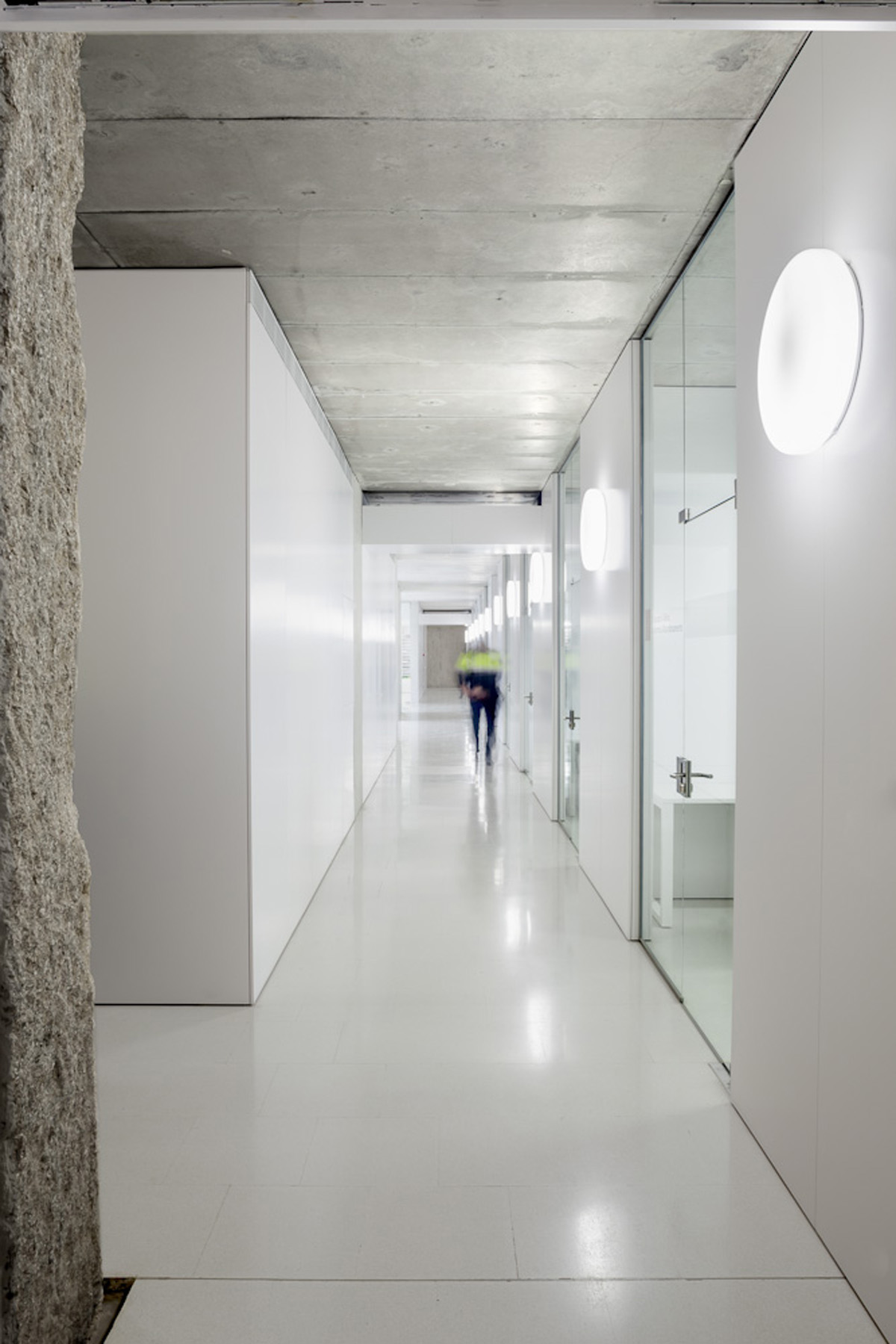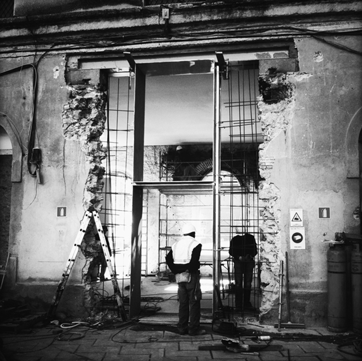 El buidat del pati central implica el suport de les edificacions existents mitjançant murs pantalla de formigó armat en tot el seu perímetre. Aquests murs queden arriostrats mitjançant unes passeres de formigó armat, que connecten els edificis perimetrals amb la plaça central. Alhora la plaça és la coberta de l’equipament soterrat. Tota l’estructura és de formigó vist. La coberta i les passeres son acabat sorrejat, les pantalles són fresades i a l’interior l’estructura de formigó te un acabat vist amb encofrat fenòlic.